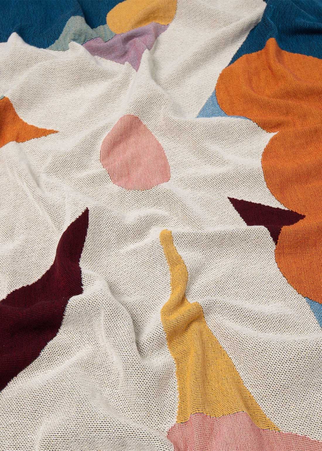The Delaney Throw was designed by Wanlissa Nuntasukon, a Bangkok-based artist and illustrator who loves abstract, wonky shapes and bold colors. Her playful pieces blend familiar forms with fresh personality, drawing from nature and everyday life for a laidback vibe that invites you to slow down and appreciate the little details.