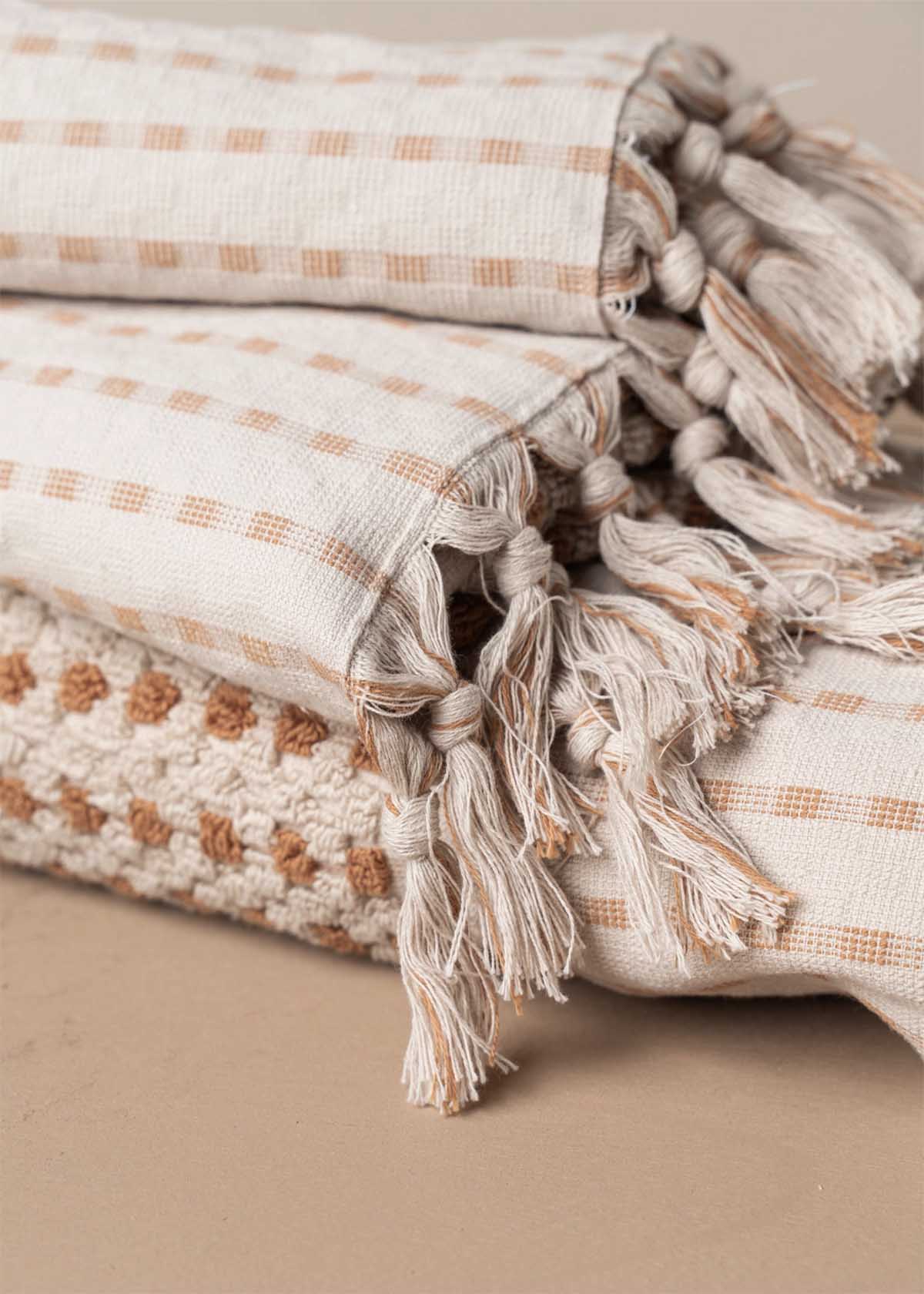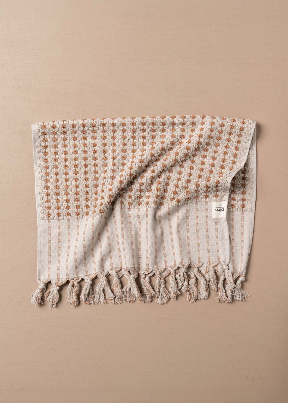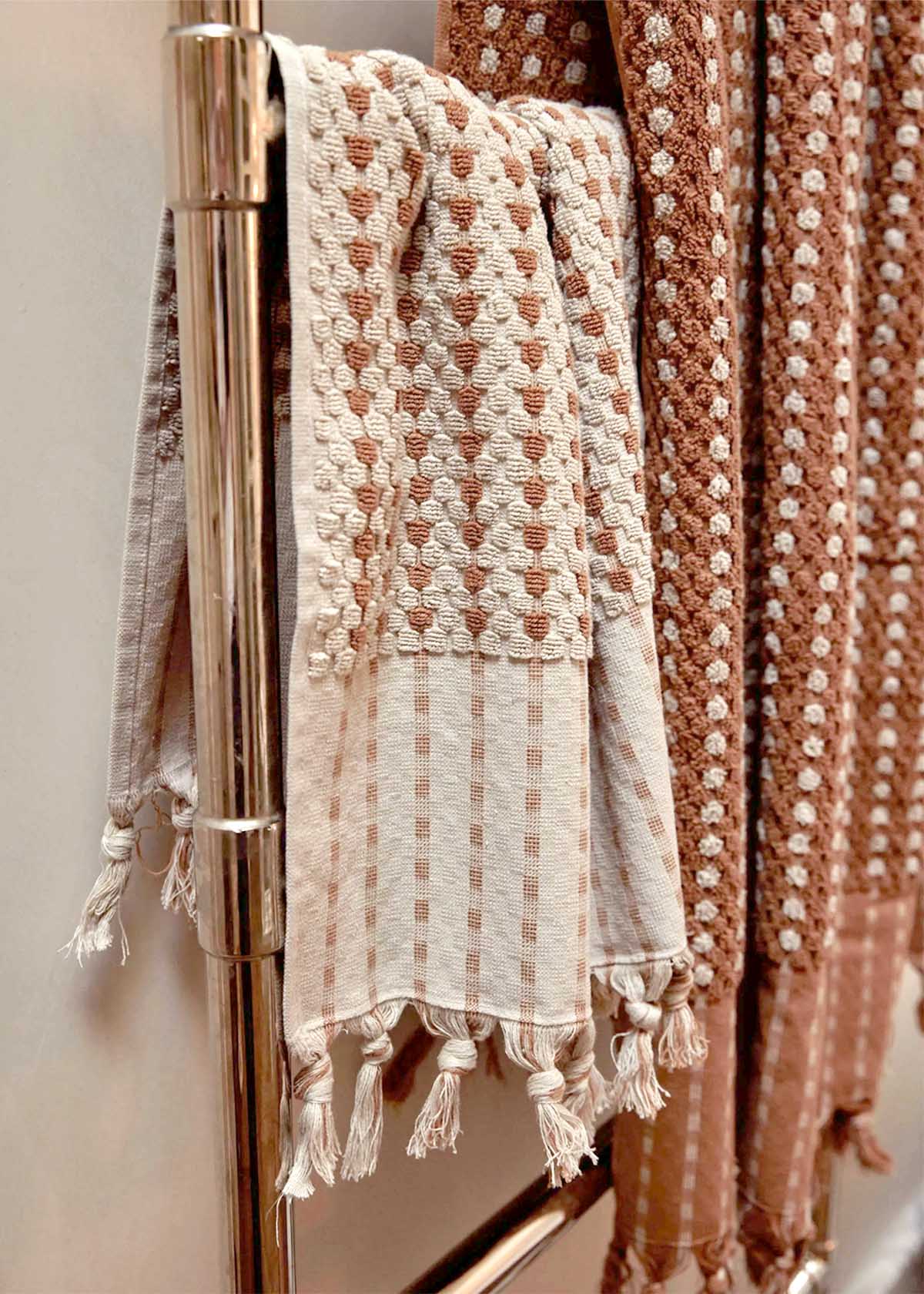 Woven from the finest OEKO-TEX® Standard 100 certified Turkish cotton, the Chickpea Towel collection invites a sense of joy into your daily rituals. Handloomed with care, each towel offers exceptional softness and absorbency. Adorned with spirited dotted patterns and lively tassels, they are perfect for draping over bathroom rails or tossing poolside. The hand towel doubles as a plush bathmat, effortlessly uniting whimsy with practical simplicity.